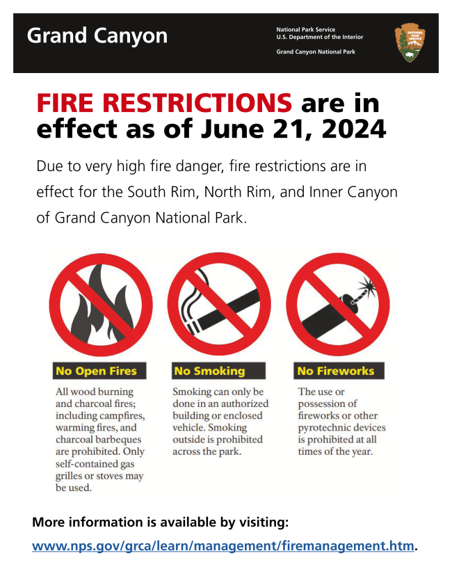Grand Canyon News Release-Stage 2 fire restrictions begin Friday, June 21 at Grand Canyon National Park