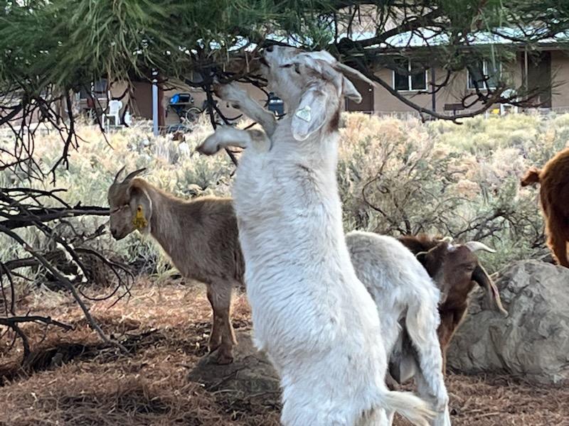 He says this is his first time in Tusayan. He’s impressed with the area, and he says the goats find Tusayan delicious.