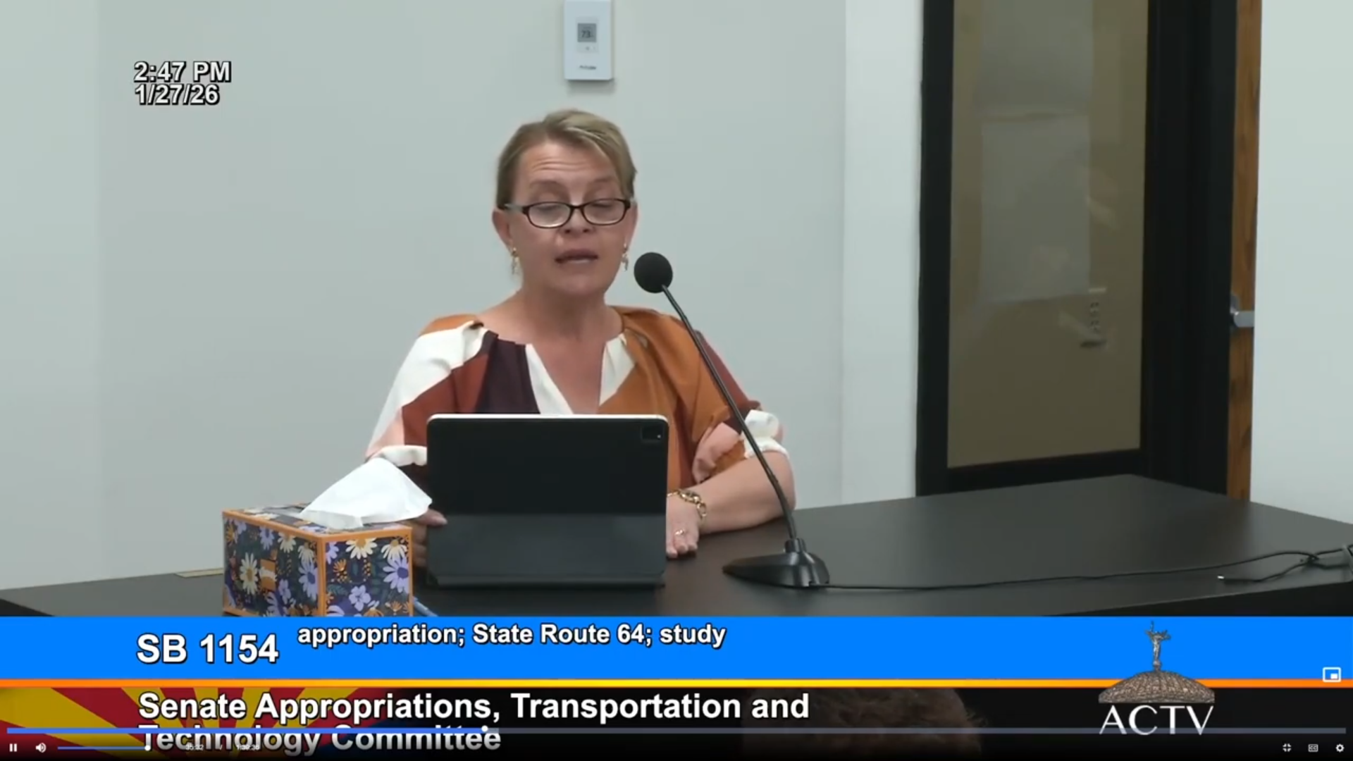 A bill to spend $500 thousand dollars to study traffic and safety on Highway 64 was approved by the Senate Appropriations, Transportation, and Technology Committee January 27th in Phoenix following Mayor Vail’s testimony.