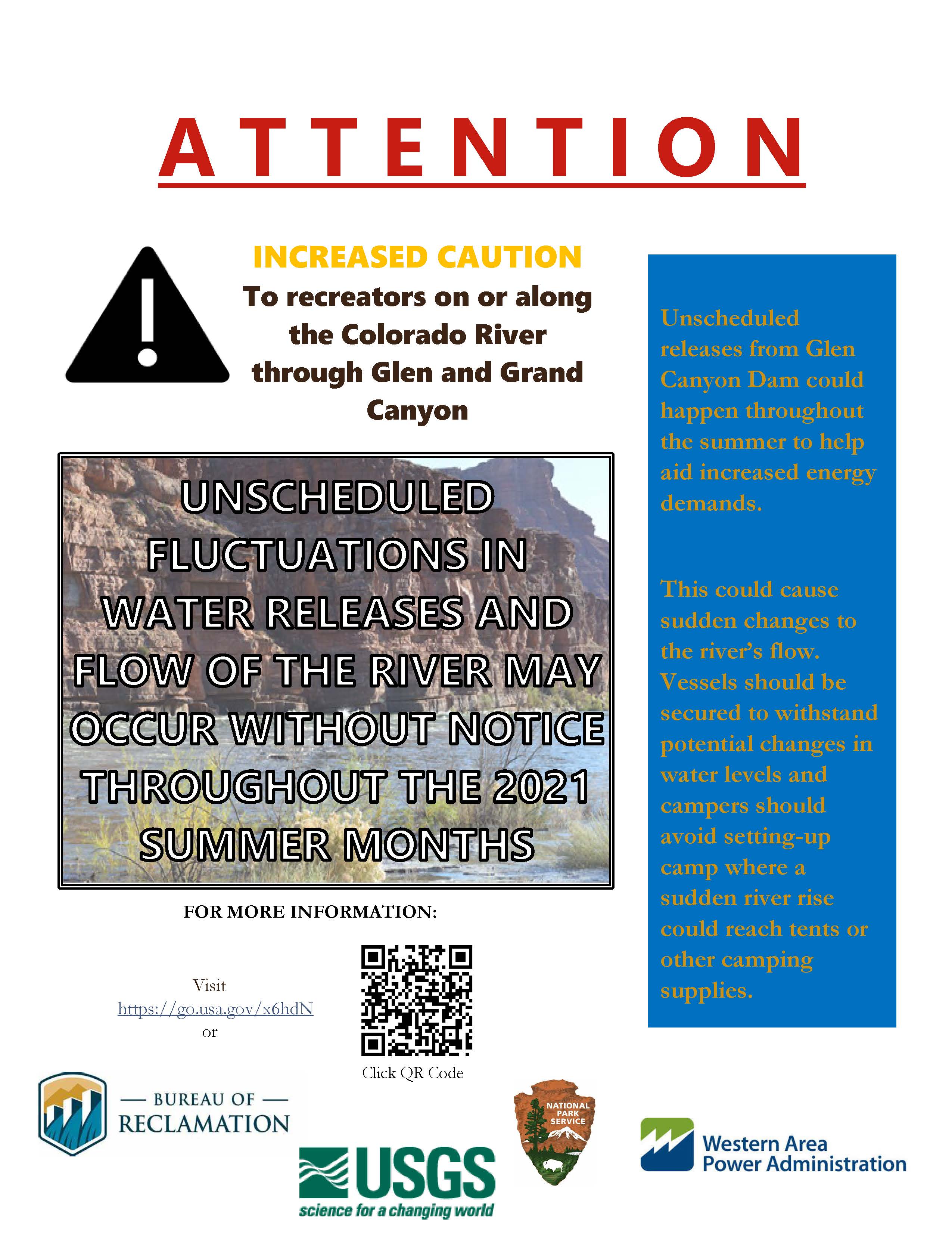 News Release: Reclamation urges public to exercise caution below Glen Canyon Dam due to potential for rapid river fluctuations