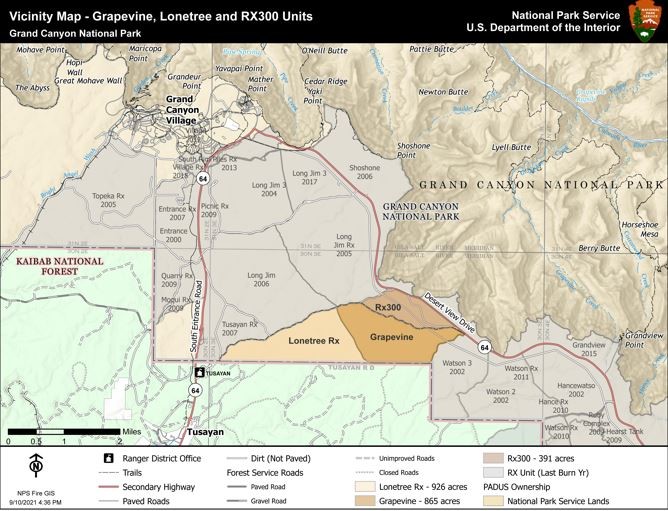 GRAND CANYON, Ariz. —Grand Canyon National Park fire managers—working with resources from Lake Mead National Recreation Area, Zion National Park and the Kaibab National Forest anticipate initiating prescribed fire treatments as early as tomorrow, November 16, 2021, on the South Rim, as weather and fuel moisture conditions allow.