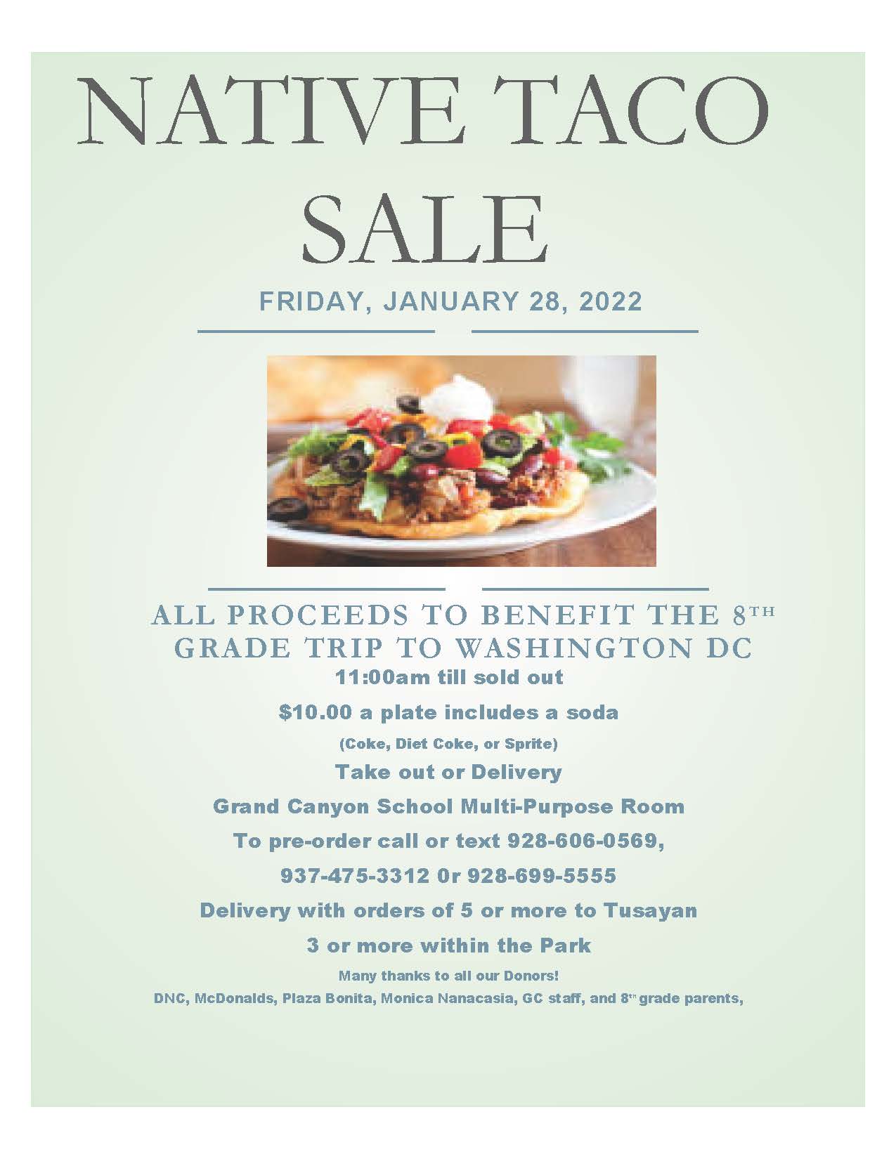 Taco Sale January 28th To Benefit Grand Canyon School District