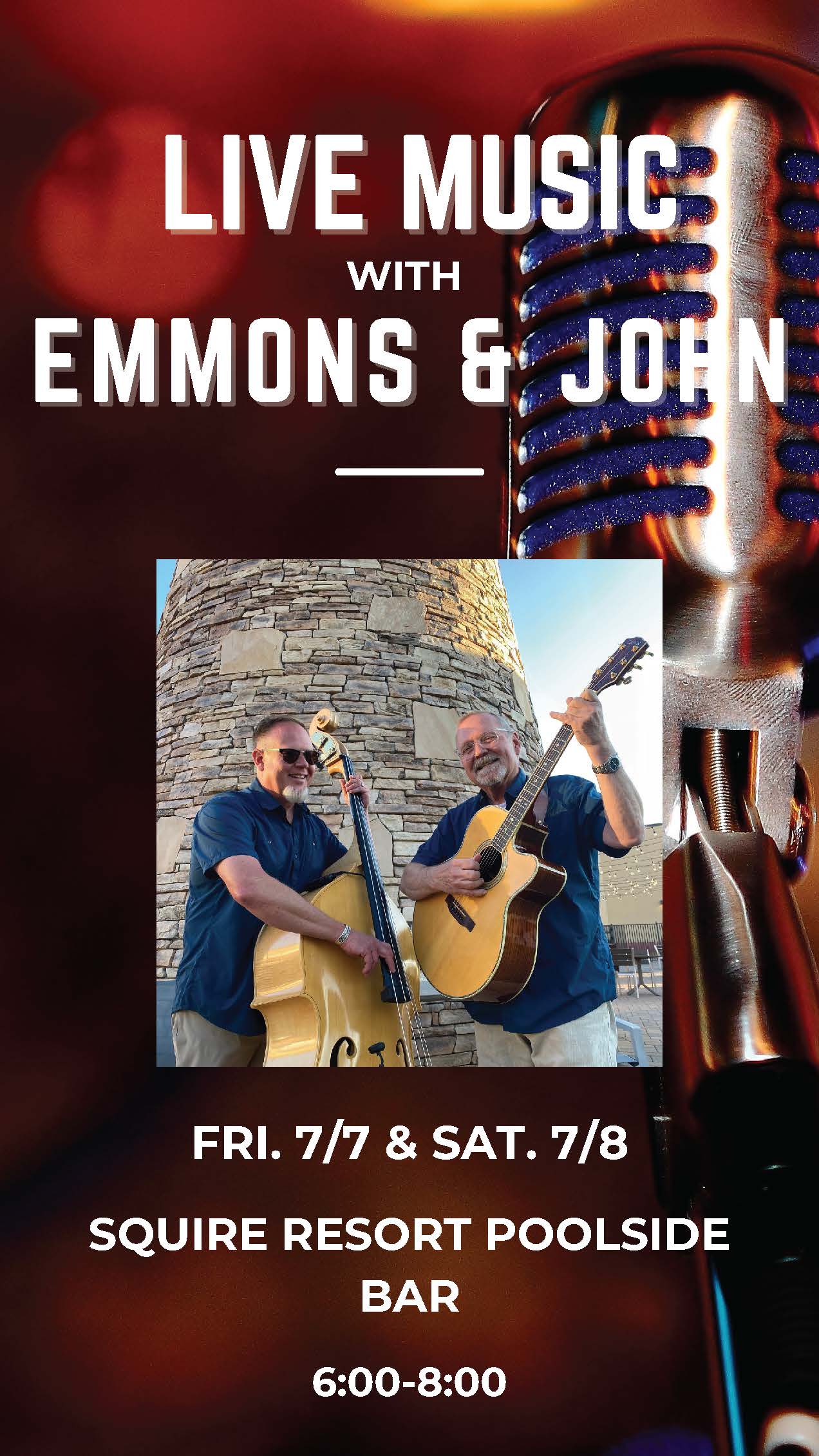 Emmons and John 7/7 and 7/8 Squire Poolside Bar 6pm to 8pm