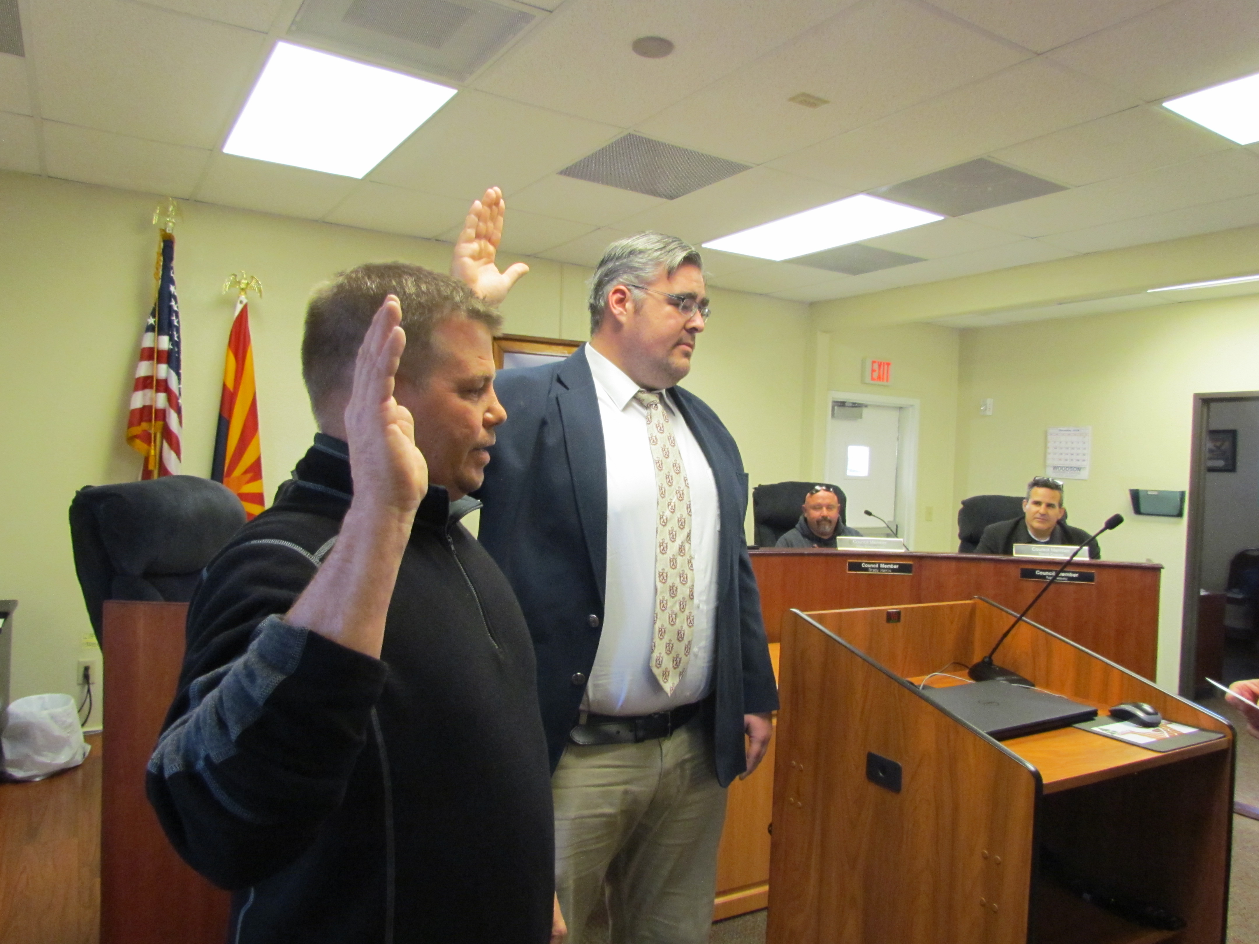 Two new members of the of the Tusayan Town Council have been sworn in. Brady Harris and Robb Baldosky are newcomers to Town Hall. Harris is a self-employed tour guide. Baldosky owns a construction company. It’s the first time in a number of years that a member of the council was not employed by Stilo business partner Elling Halvorson. They were sworn in December 12th after they were elected in November. Mayor Craig Sanderson was also sworn in having won re-election.