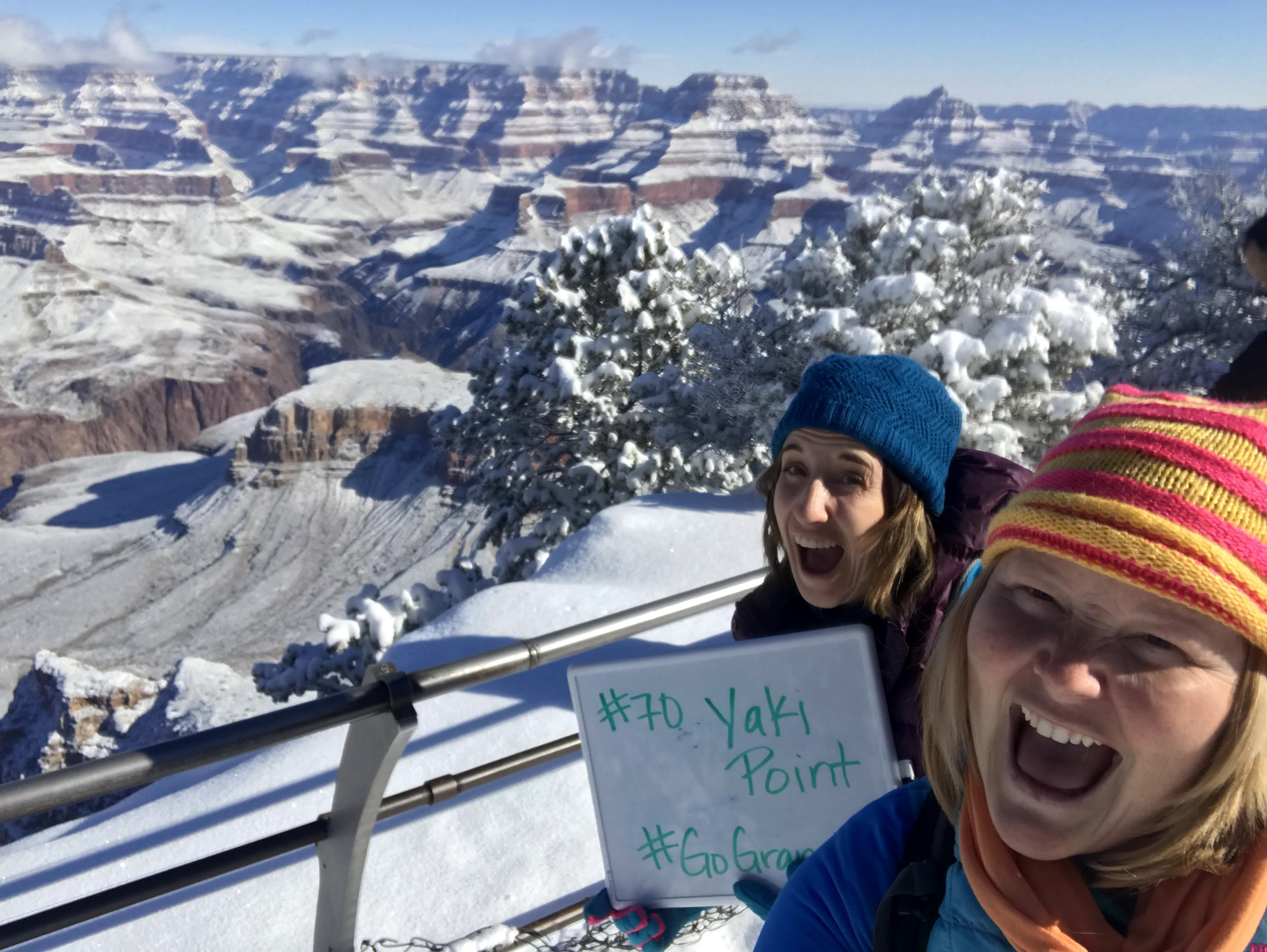 Smith and Kenison, who bonded over their love for national parks and Arizona, used the park’s 100th anniversary to launch a yearlong quest to try 100 new things at the park. So far, they’ve hiked into the canyon, eaten dinner at the Grand Canyon Lodge and braved the cold to take in the view at Yaki Point.