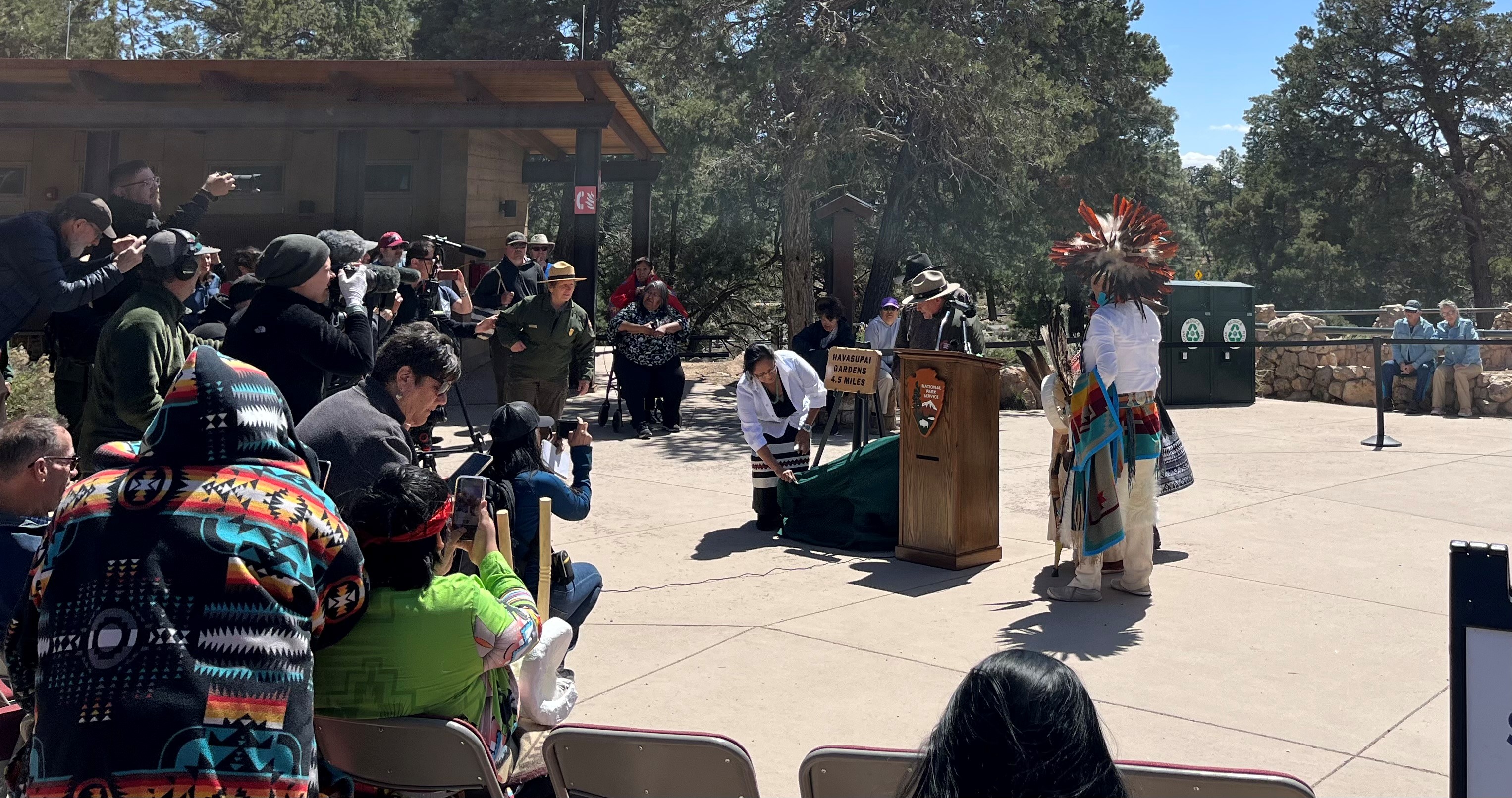 The official renaming ceremony for Havasupai Gardens drew more than 150 people to the public ceremony at Bright Angel trailhead .The crowd heard from Havasupai tribal leaders and community members about the history of their families at Havasupai Gardens. A smaller event was held at Havasupai Gardens. A number of Tusayan residents attended including Mayor Clarinda Vail.
