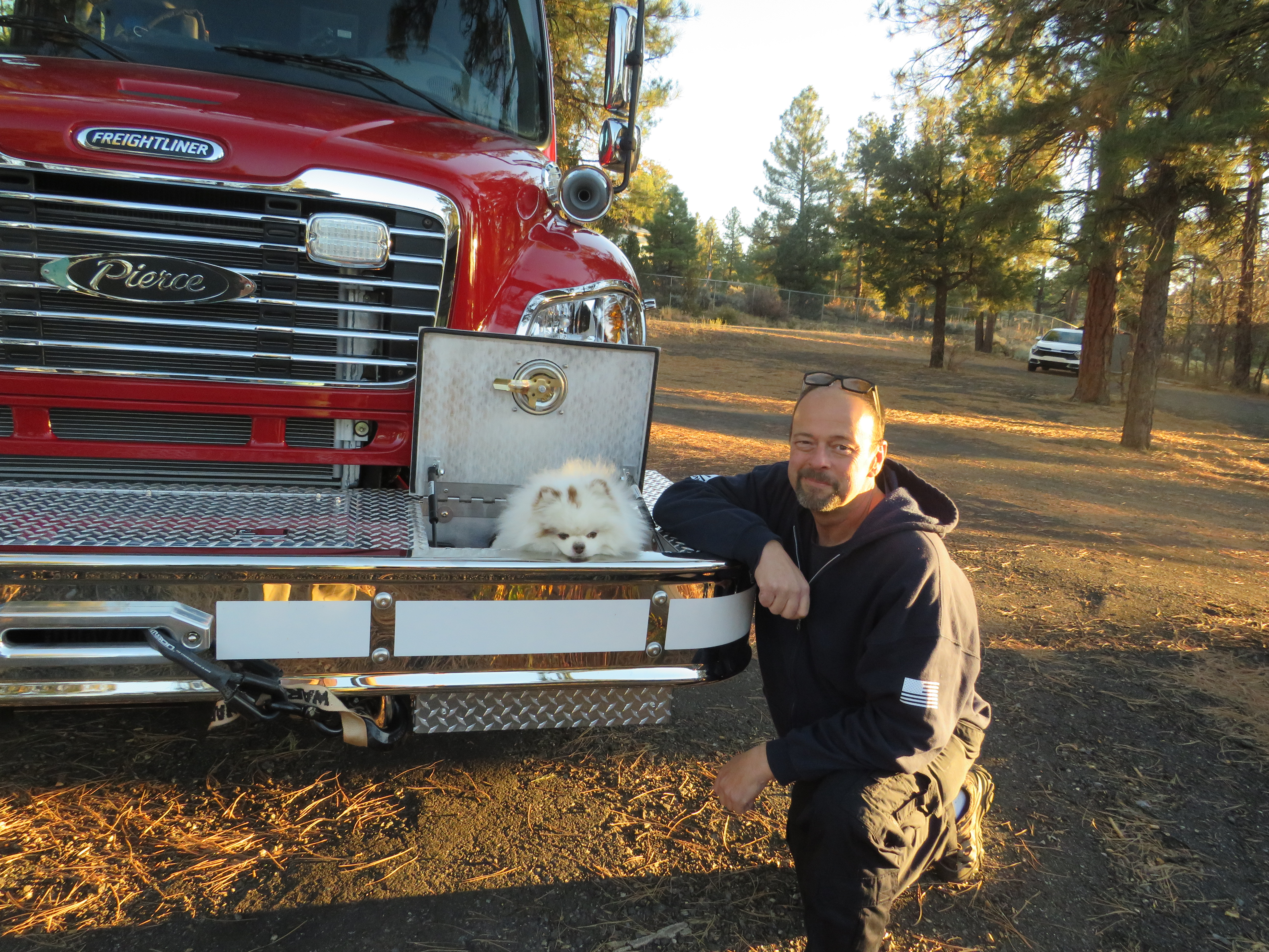 Thanks to funds provided by the Town of Tusayan, the community is now being served by a new fire engine. Tusayan Fire Chief Greg Brush brought the new fire engine to Town Hall ahead of the November 14th Town Council meeting. Morpheus, the unofficial firehouse dog, came along for the ride.