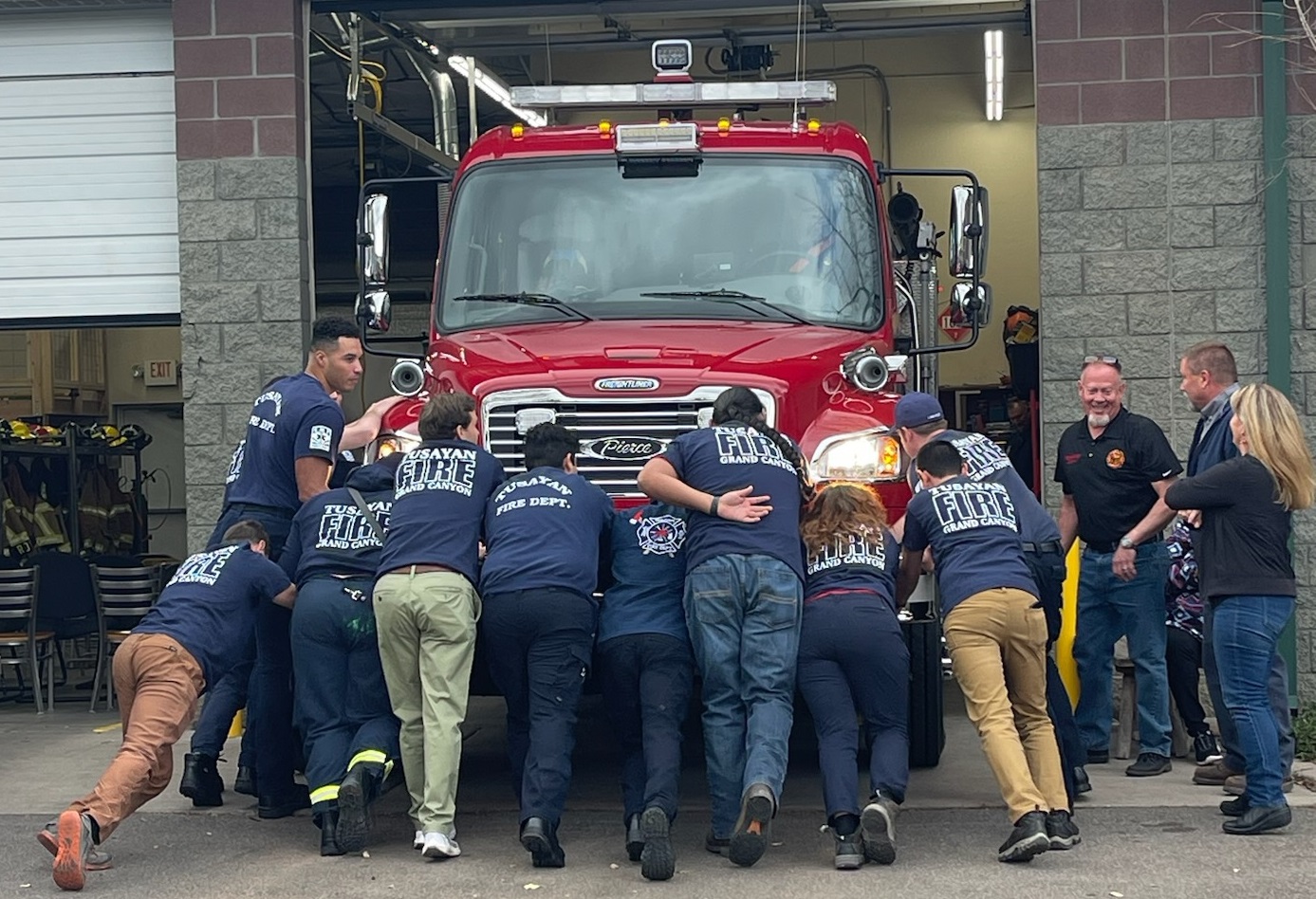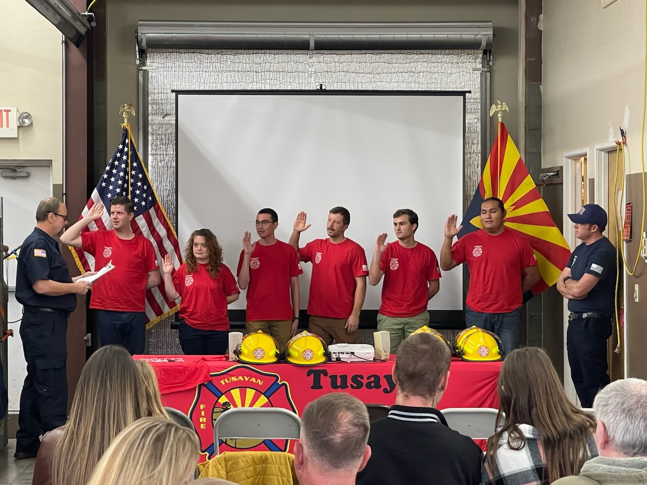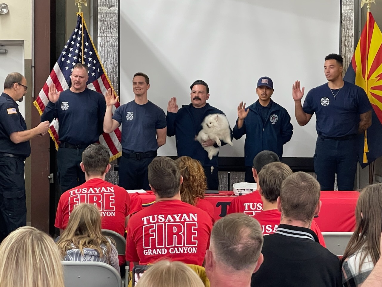 The Tusayan Fire District has new graduates from its Volunteer Fire Academy. They were honored last week along with newer Tusayan Fire District employees. Morpheus, the unofficial firehouse dog, was also present.