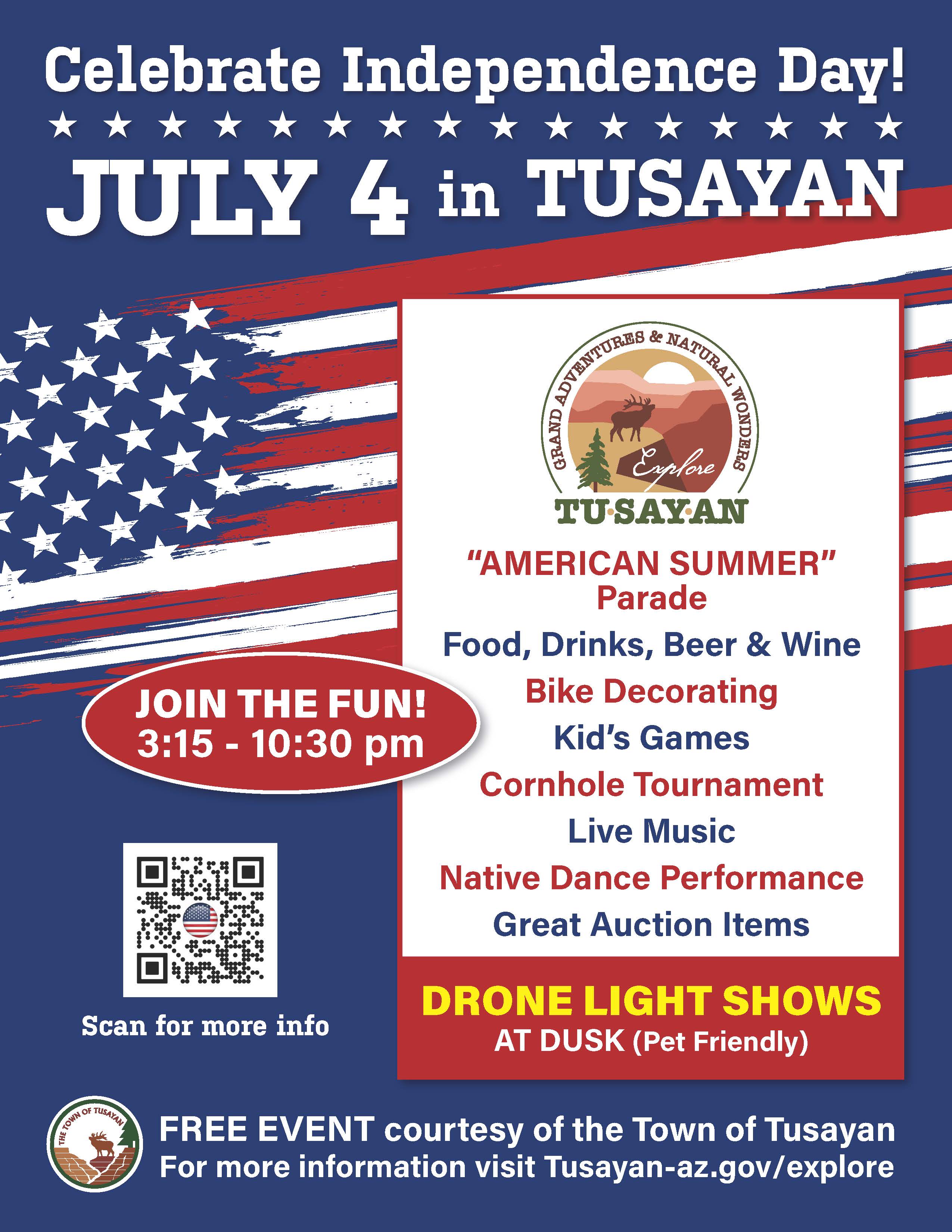 On the heels of a successful Cinco de Mayo weekend, the Town of Tusayan is making plans for its 4th of July Celebration which will include a parade, a drone light show, and live music. The theme this year is “American Summer.”