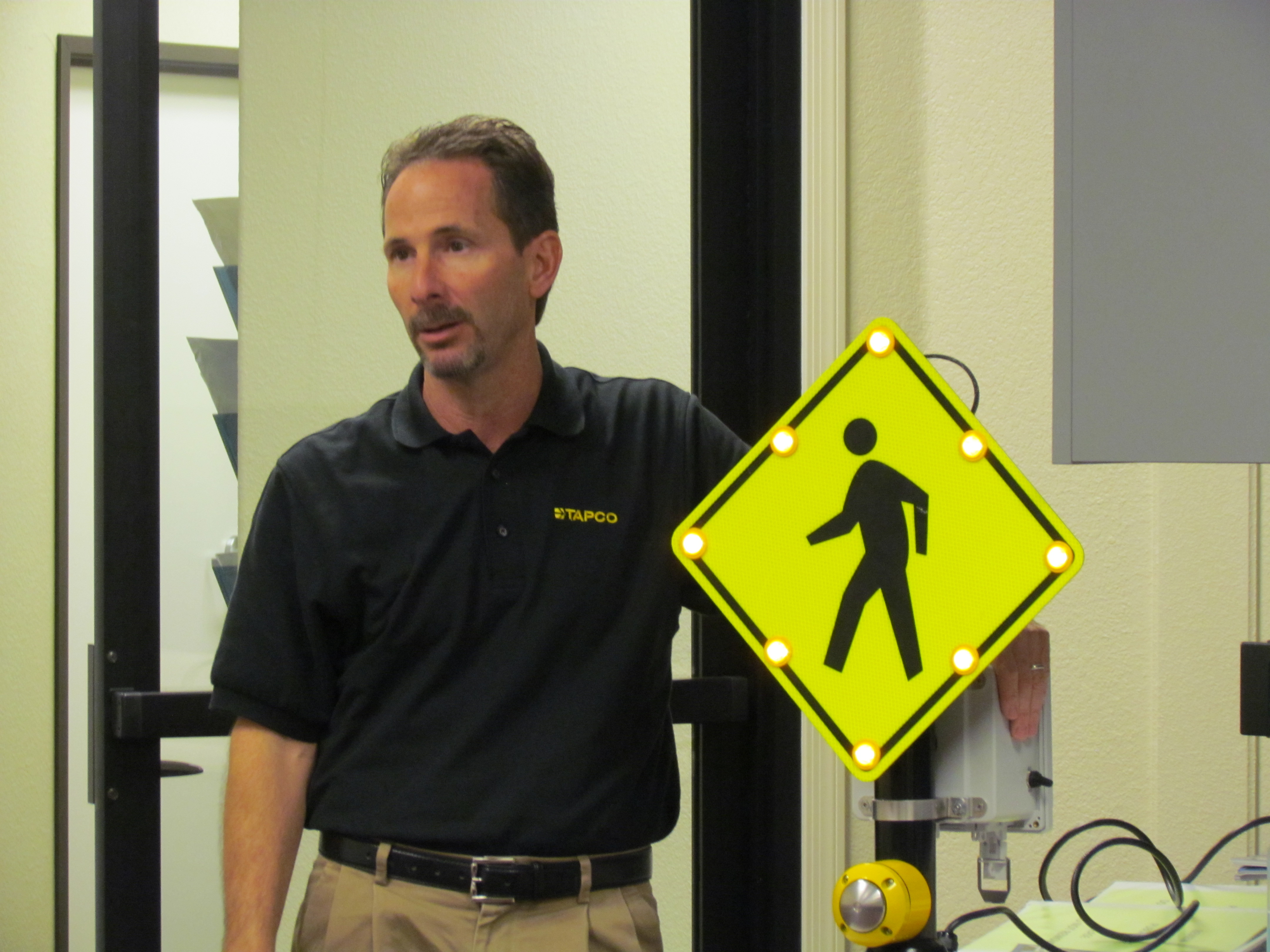 Tapco, which makes the signs, assures the Town Council that this solution has ADOT’s blessing. Sales Representative Dave Donovan brought a scaled down model of the signs that will be used. He says they increase the ‘yield rate’ by 23% which means the odds of a car stopping for a pedestrian go up 23% with these signs. They should be up in four to six weeks.