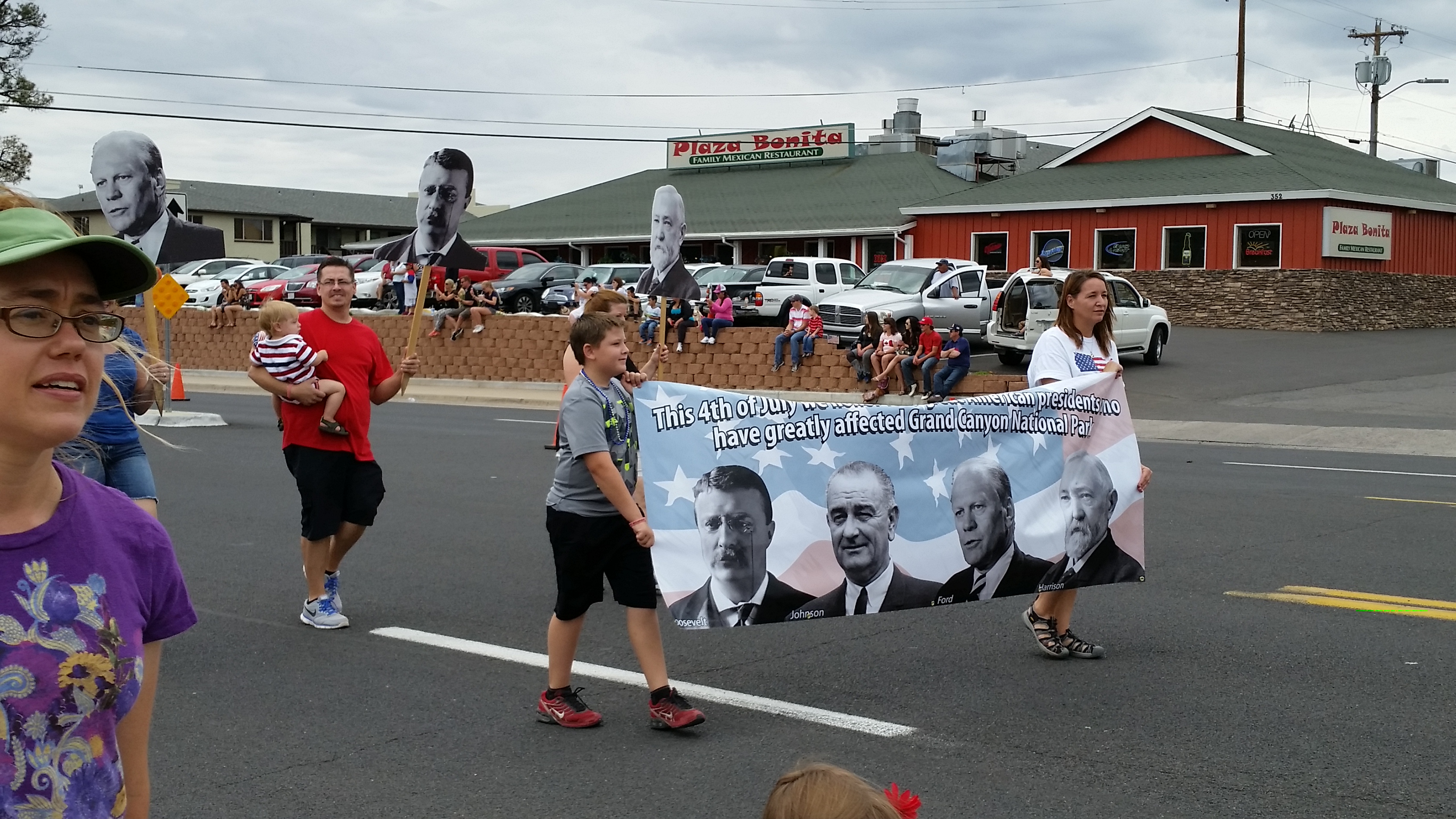 Tusayan's 4th of July Celebration honored the Grand Canyon National Park's founding fathers. The parade celebrated four American Presidents who greatly affected Grand Canyon National Park: Benjamin Harrison, Theodore Roosevelt, Lyndon Johnston & Gerald Ford.