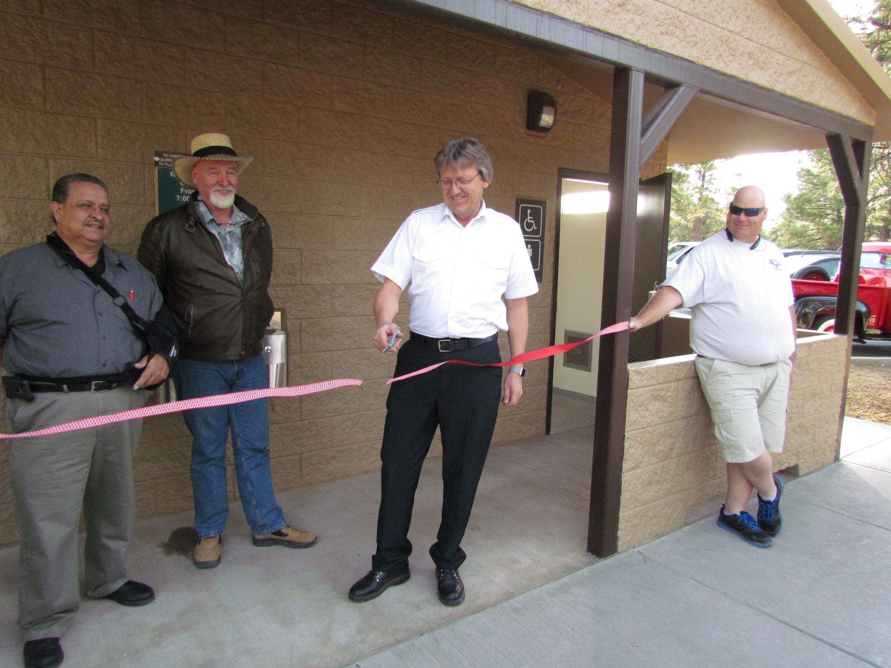 It took a few years and thousands of dollars but the restrooms at the Town Park in Tusayan are open for business. They were formally opened and dedicated May 5th, along with new sidewalks.