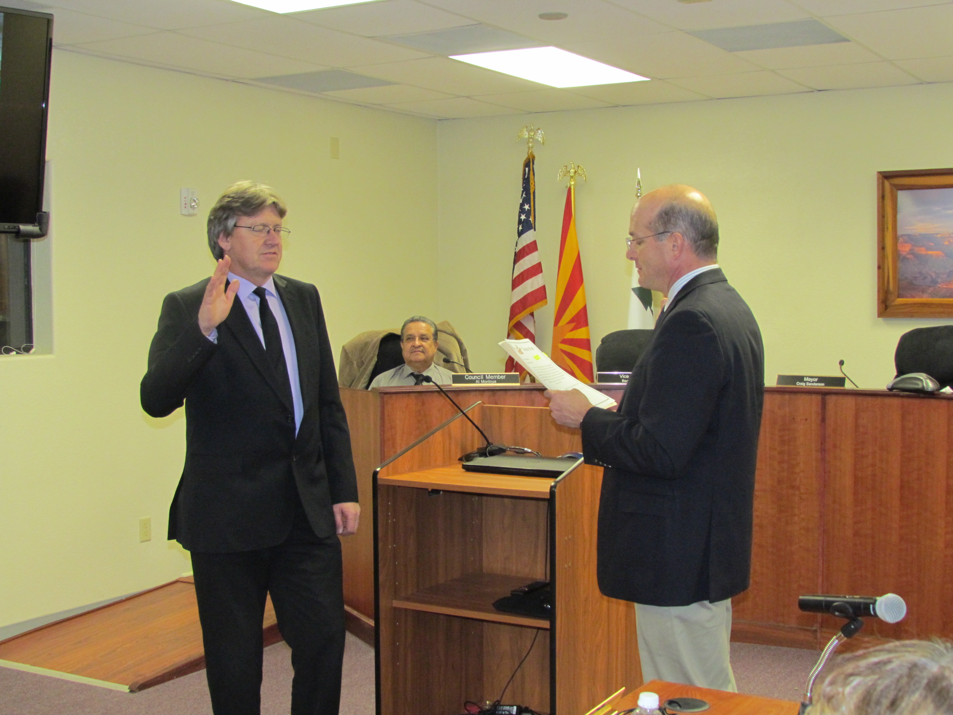 Becky Wirth, who was also elected to the council, could not attend the meeting due to a death in the family. She was re-appointed to the Vice Mayor's post.