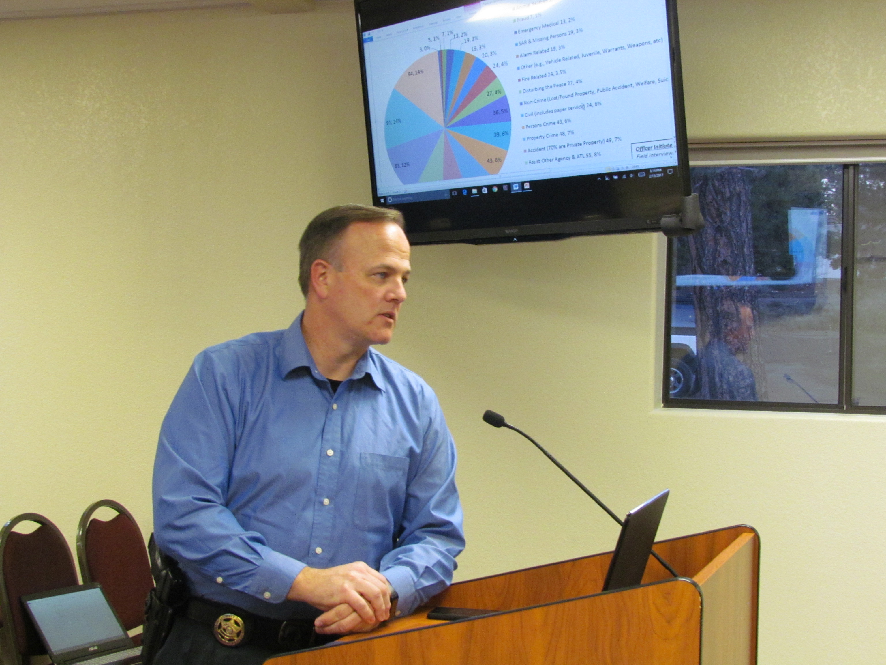 From January to December of 2016, there were 43 crimes against persons reported and 48 property crimes. There were 27 calls for disturbing the peace.