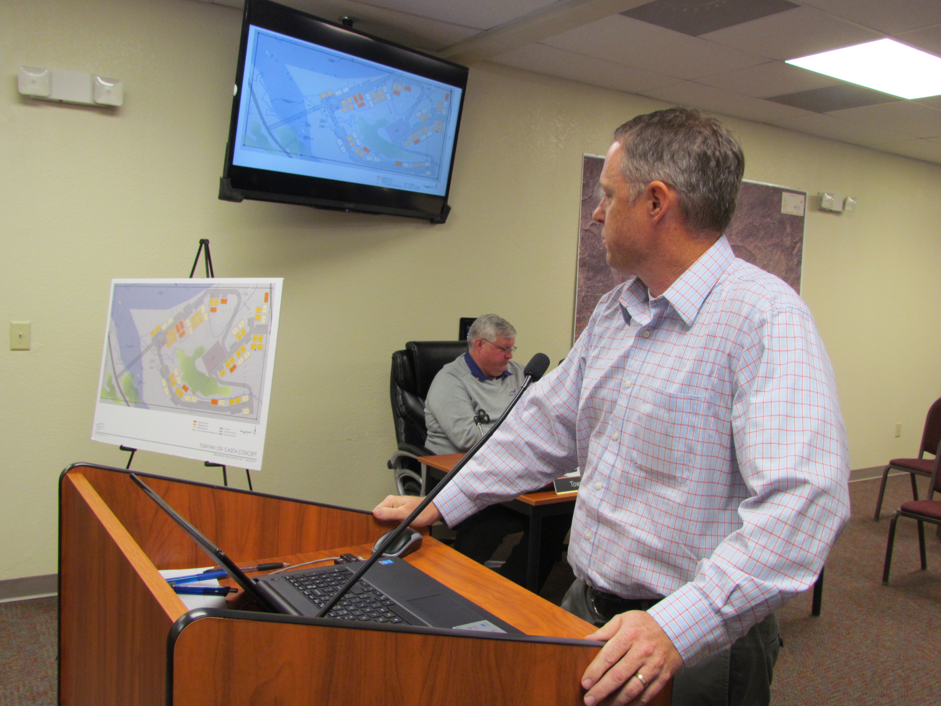 Matt Cawley with Westland Resources presented the Tusayan Town Council with options. In order to have the maximum 70 homes on 20 acres, smaller casita style homes would have to be used.
