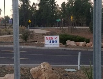 Signs for the yes on 400 campaign went up last week. Many of them were placed on the ADOT right of way on Highway 64. That’s against the rules. Despite a complaint being made, enforcement has yet to happen. The pro 400 signs remain up despite the violation.